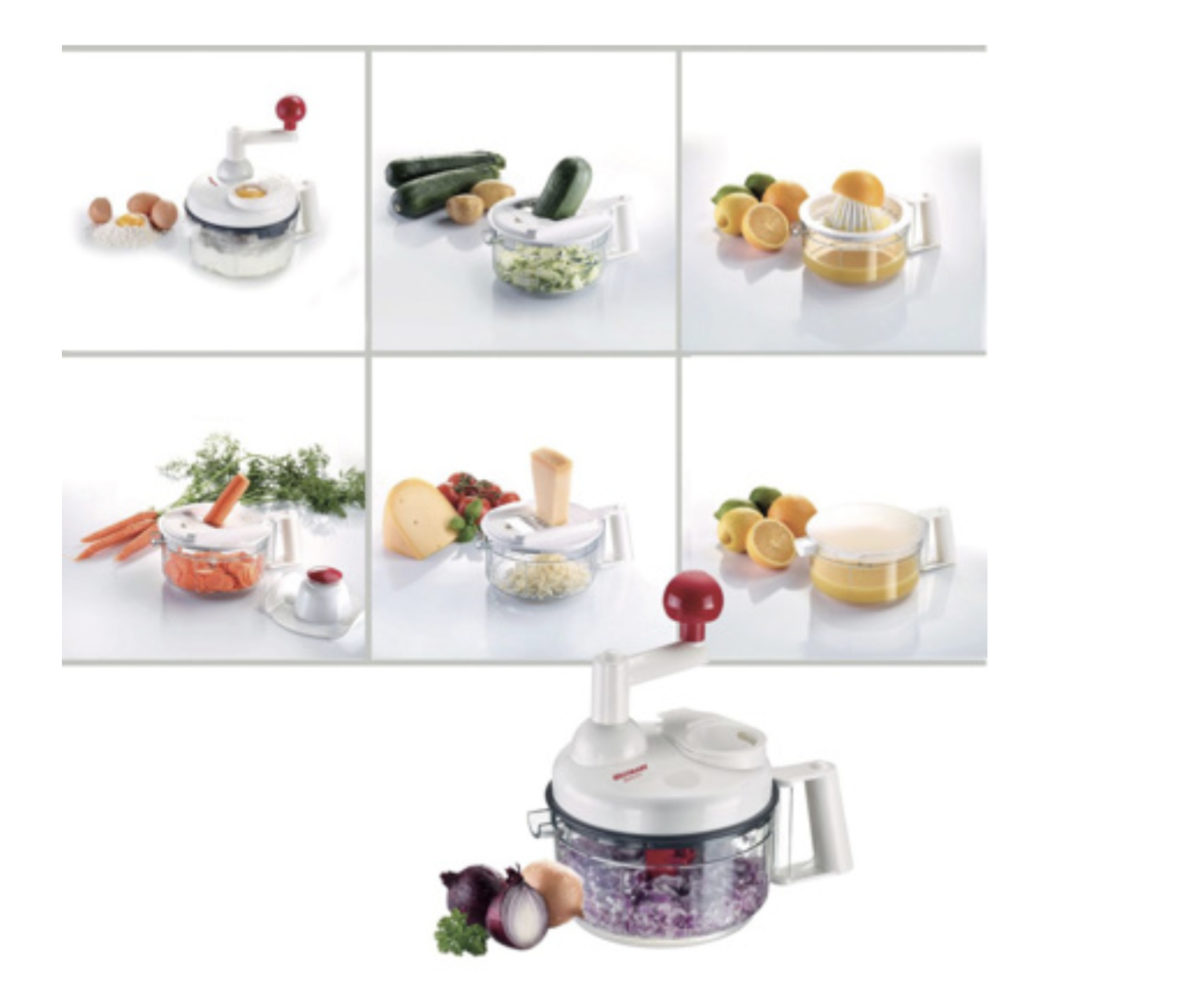 • 11 tarvikut komplektis – sh lõiketerad, riivid, mahlapress, vispel, munavalge eraldaja